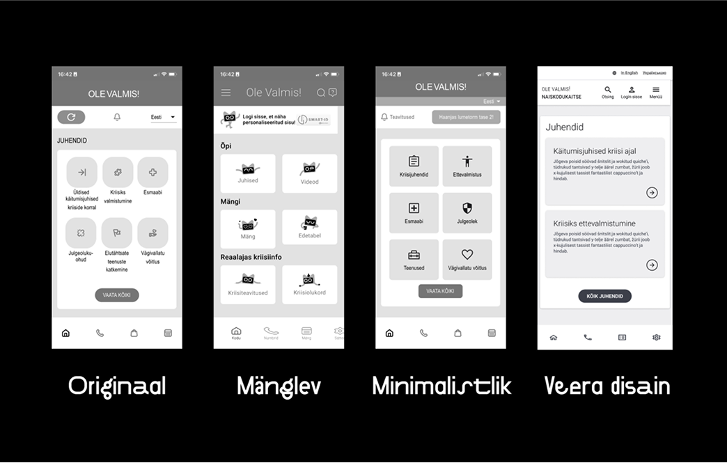 Tests with 10 young adults found that the minimalist design and playful design were heavily preferred over the original app design and the Estonian Veera design system.